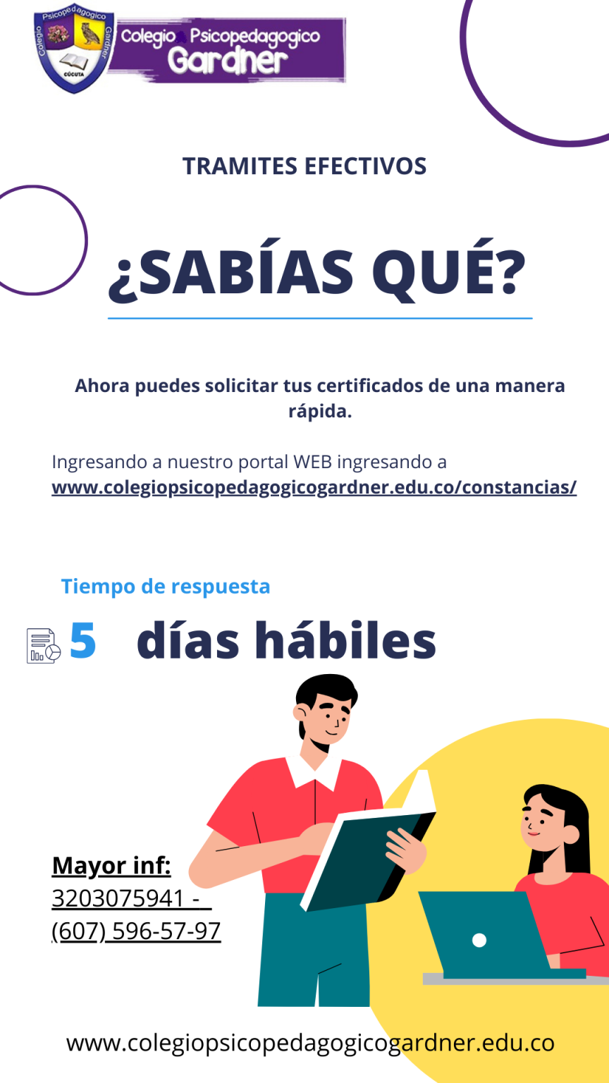 📌 IMPORTANTE: Una vez enviado el formulario, recibirá en su correo electrónico el valor del certificado solicitado y el número de cuenta para realizar el pago. Para completar el proceso, deberá enviar el comprobante de pago al número de contacto del colegio.